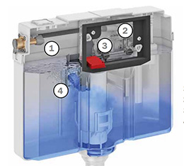 Смывной бачок объемом 10 л, выборочный слив большого (4,5/6/7,5/9 л) или малого (3 л) объема воды;